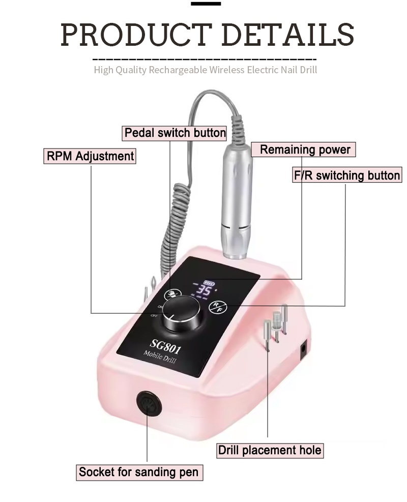 | Деталі портативної електричної дрилі для гелевих нігтів зі швидкістю 35 000 об/хв |
