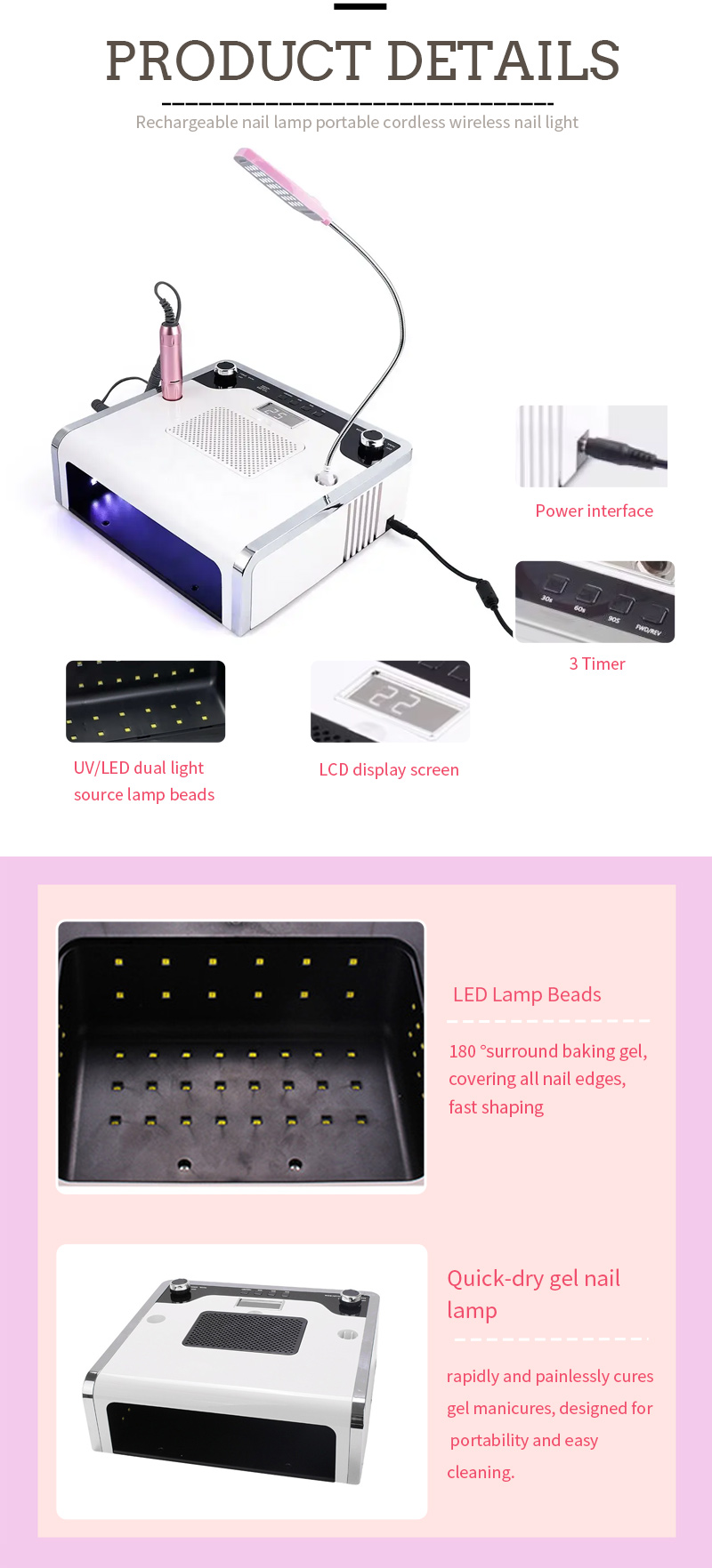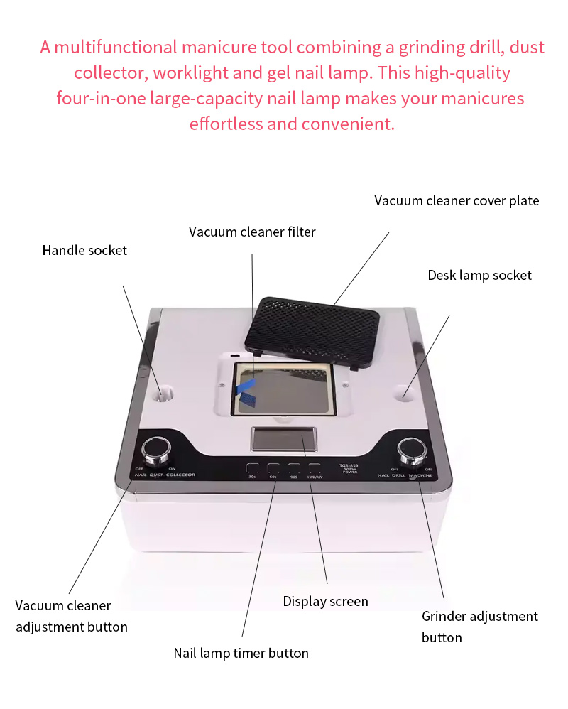Багатофункціональна лампа для нігтів 4 в 1 забезпечує рівномірне висихання клею без усадки. Його подвійні джерела світла забезпечують м’яке нагрівання, щоб запобігти знебарвленню рук і напрузі очей, підходить як для рук, так і для ніг, забезпечуючи неймовірно швидкі результати висихання.