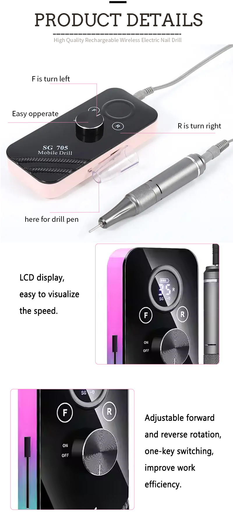 Функція продукту та застосування 705 високошвидкісних 35000 об / хв лаку для зняття нігтів для зняття електричного нігтів
