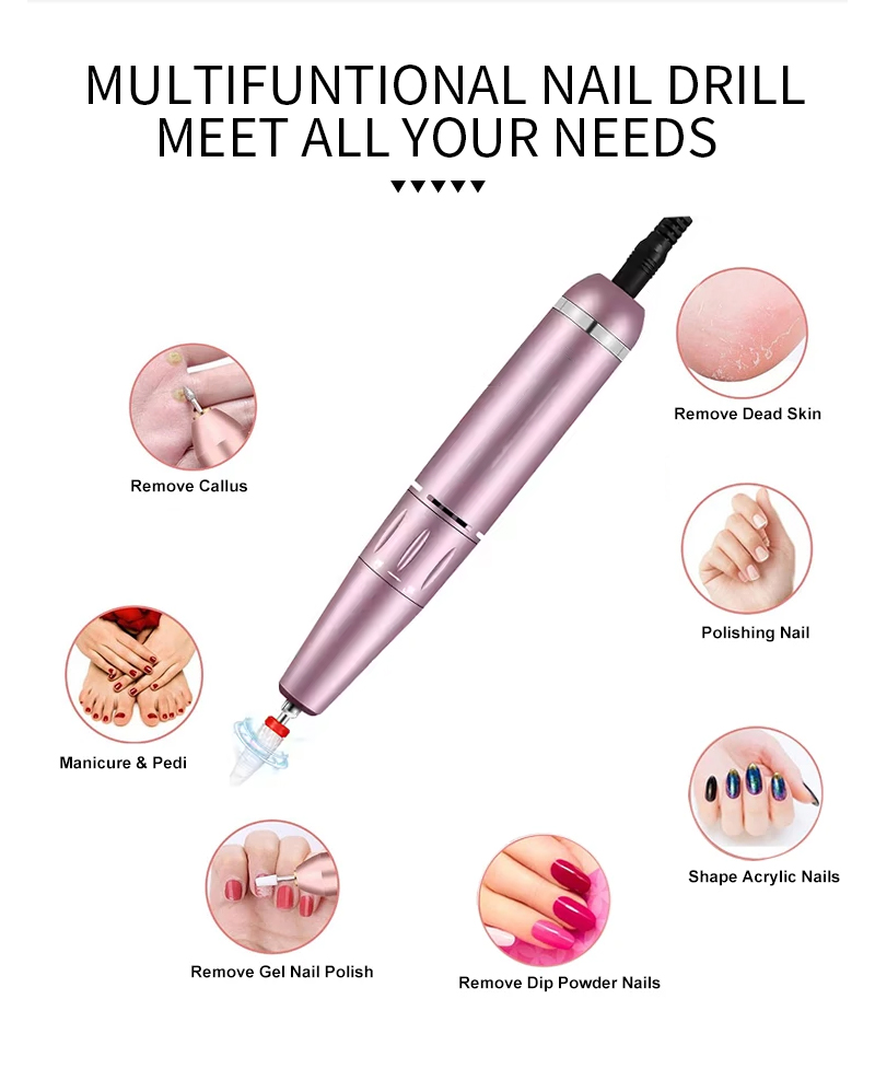Портативний електричний набір дрилів для нігтів із потужним двигуном 65 Вт 35000 об./хв