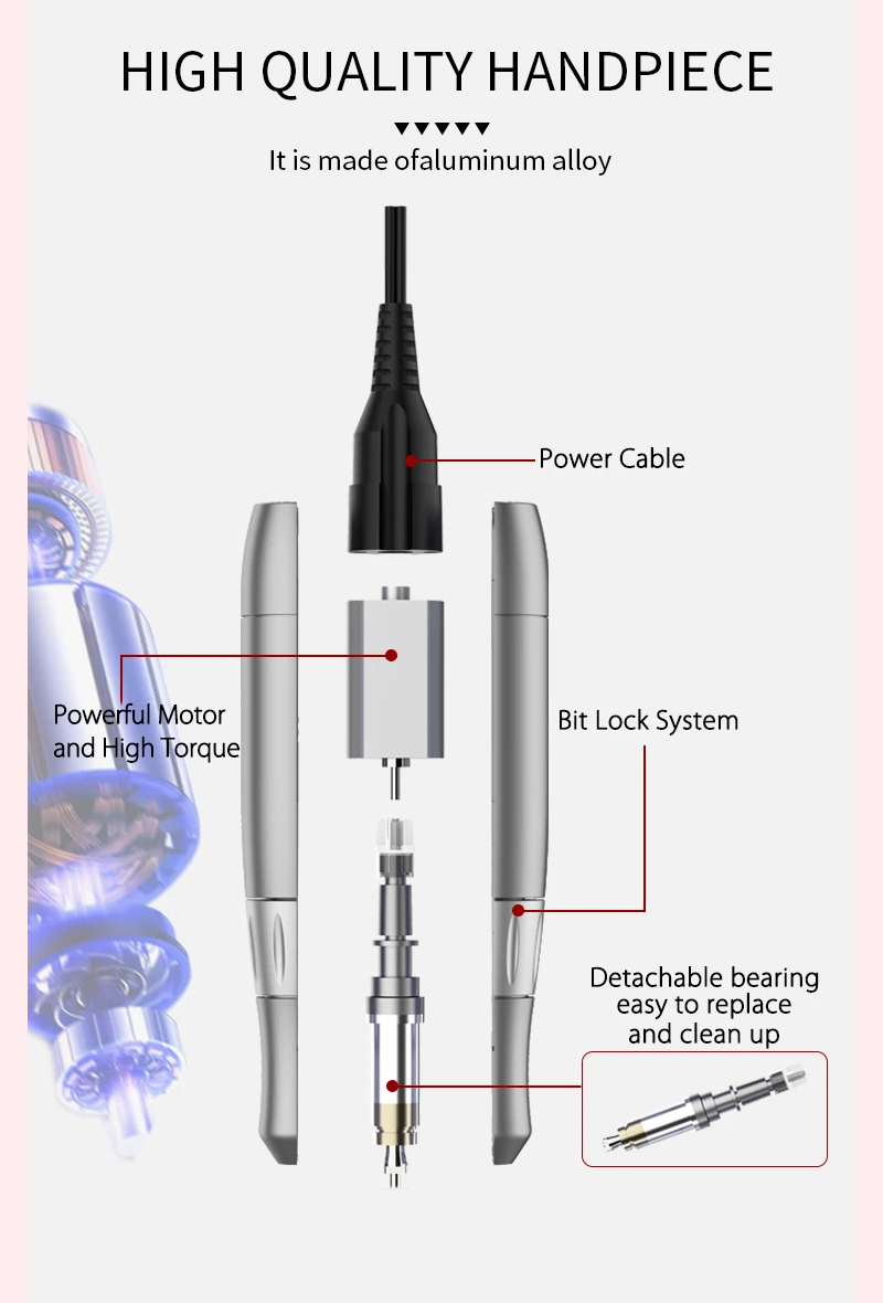 Портативний електричний набір дрилів для нігтів із потужним двигуном 65 Вт 35000 об./хв