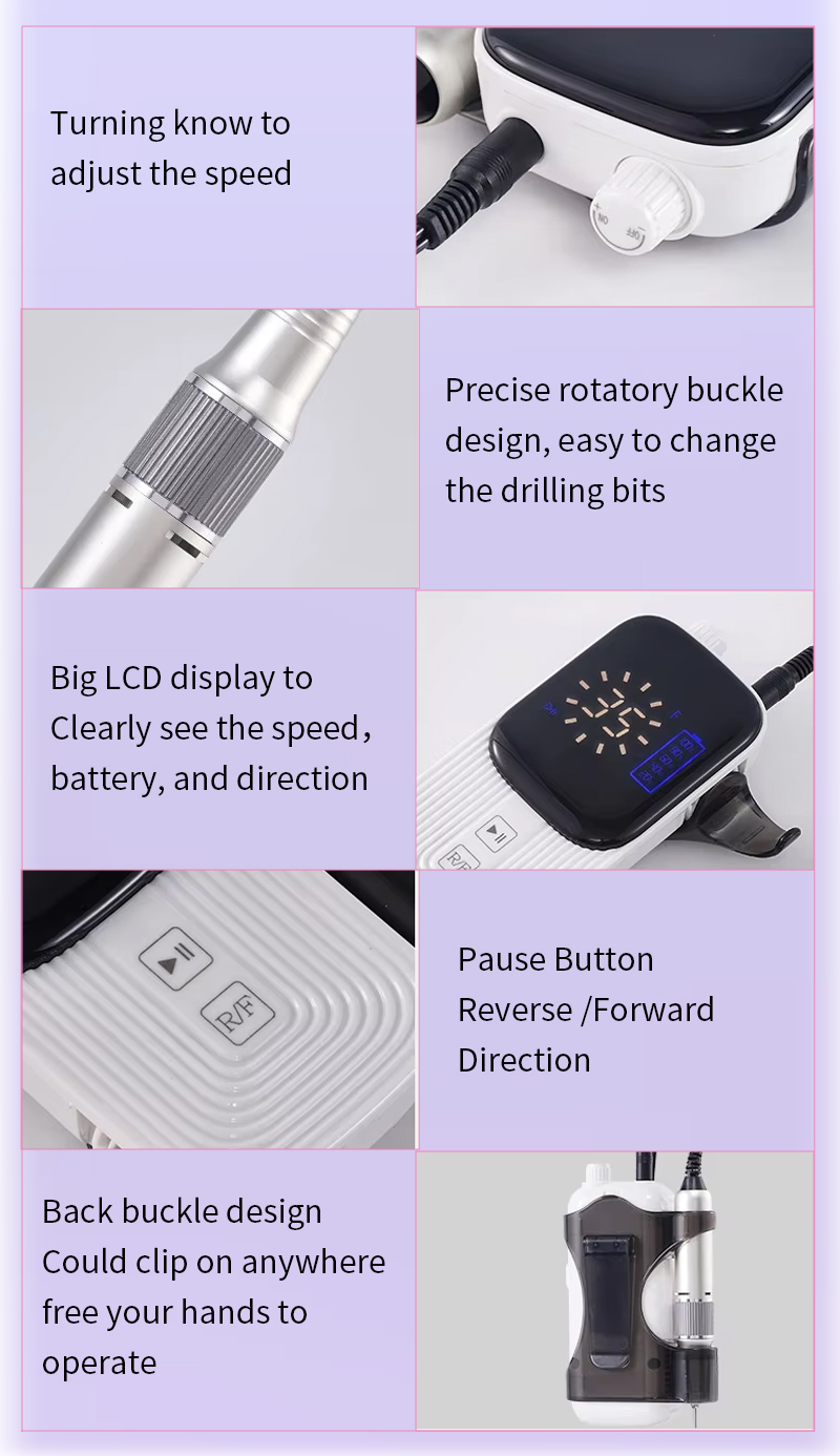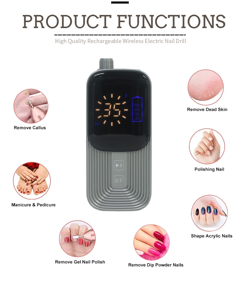 Портативний електричний набір дрилів для нігтів із потужним двигуном 65 Вт 35000 об./хв