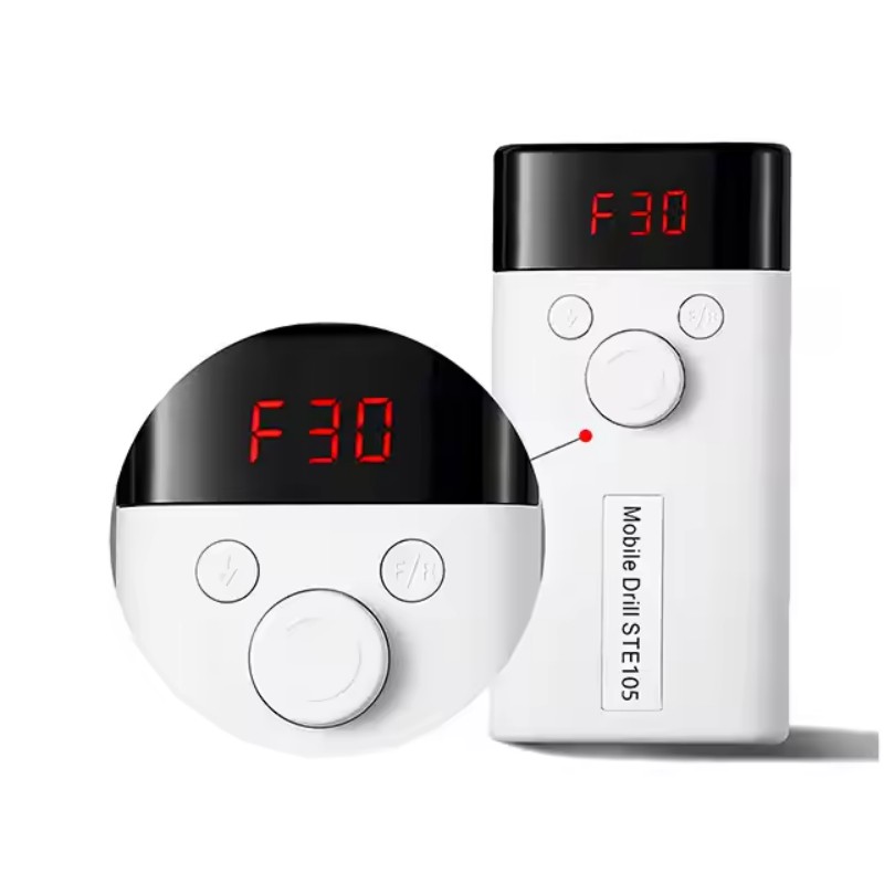 Конструкція дисплея цієї електричної машинки для полірування нігтів 30 000 обертів на хвилину має перемикач увімкнення/вимкнення та обертання вперед/назад для загальної активації однією кнопкою, гніздо для швидкої зарядки внизу, змінне гніздо для свердла вгорі та трипозиційне регулювання швидкості для задоволення різноманітних потреб.