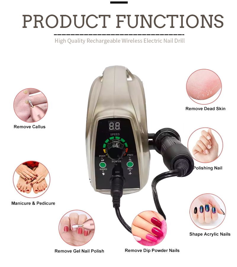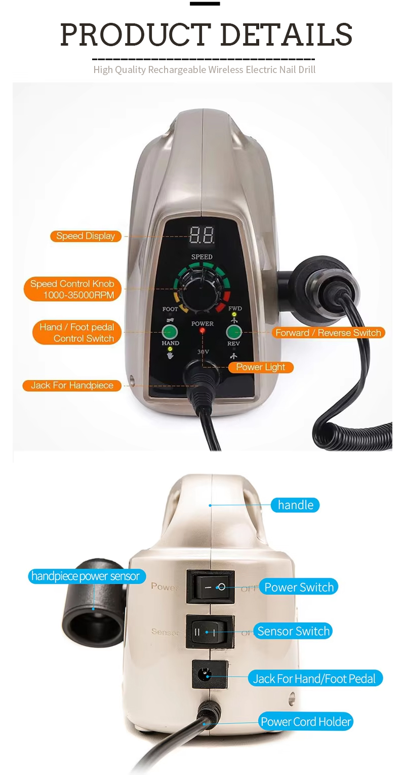 Портативний електричний набір дрилів для нігтів із потужним двигуном 65 Вт 35000 об./хв