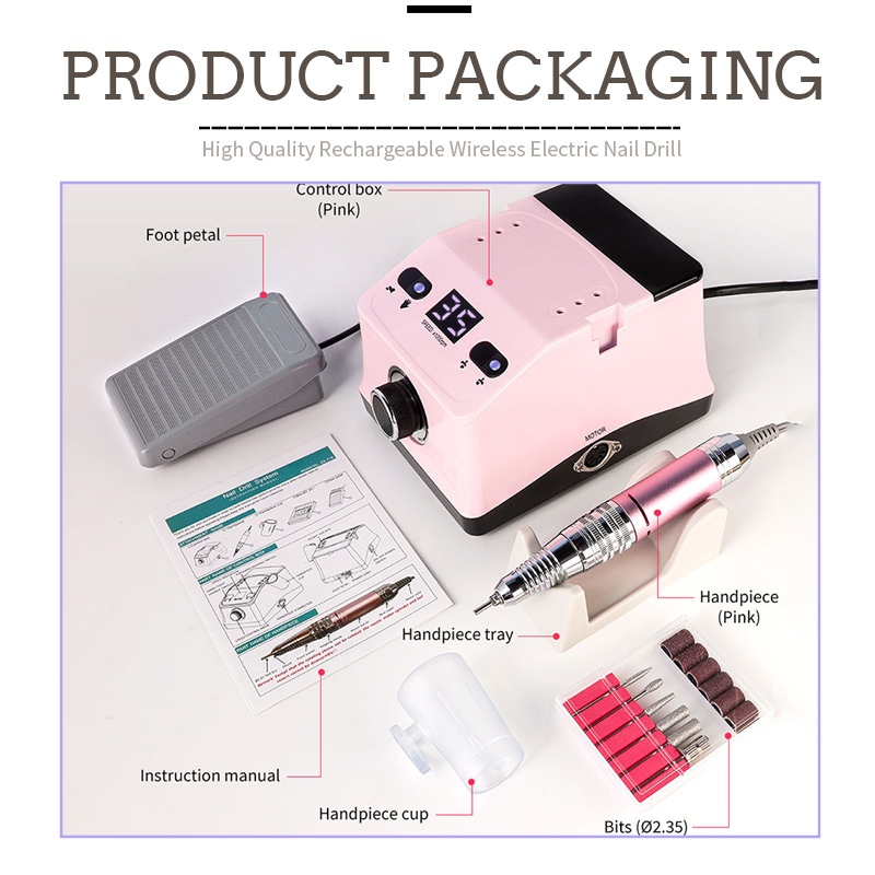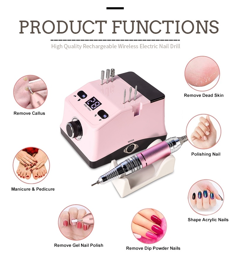 Портативний електричний набір дрилів для нігтів із потужним двигуном 65 Вт 35000 об./хв