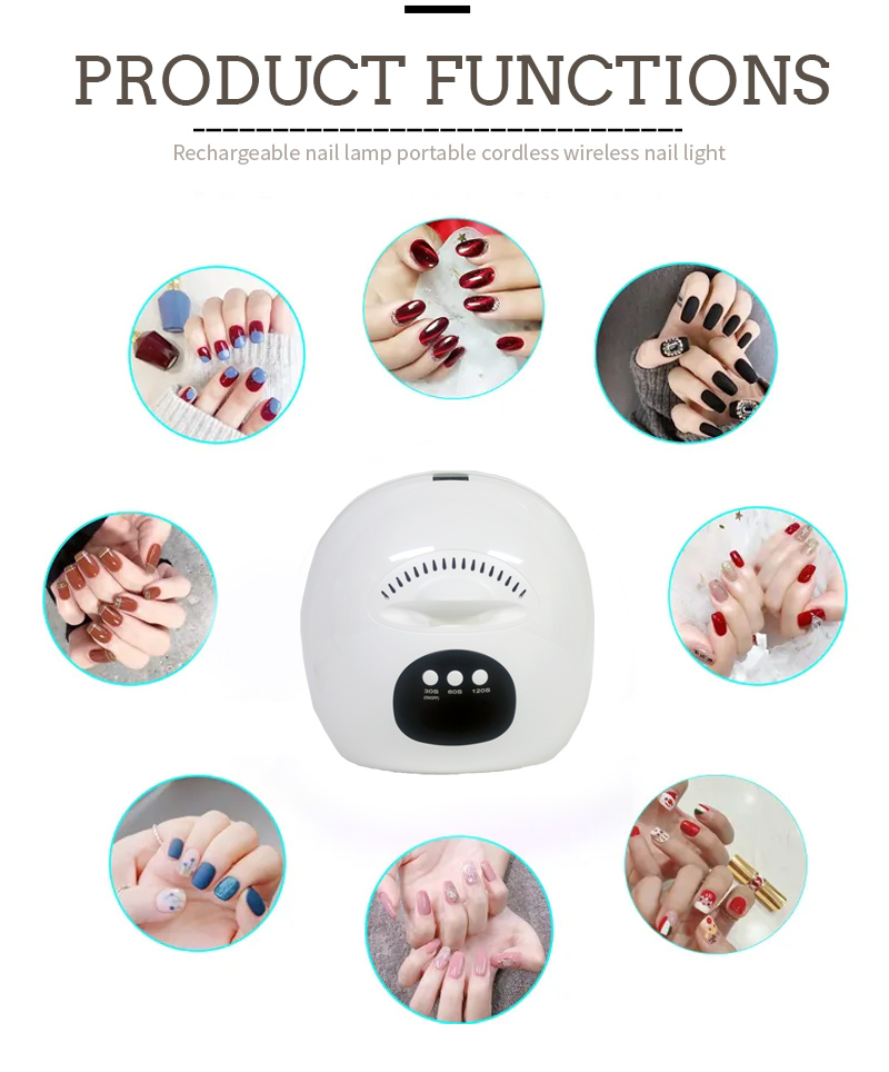Засіб забезпечує рівномірне висихання клею без усадки. Його подвійні джерела світла забезпечують м’яке нагрівання, щоб запобігти знебарвленню рук і напрузі очей, підходить як для рук, так і для ніг, забезпечуючи неймовірно швидкі результати висихання.