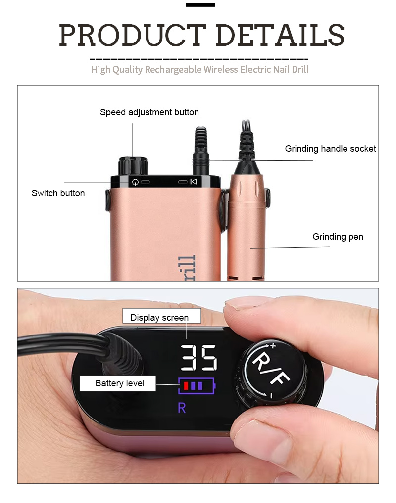 Портативний електричний набір дрилів для нігтів із потужним двигуном 65 Вт 35000 об./хв