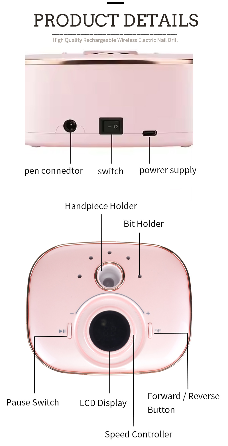 Перезаряджуваний набір свердел для нігтів із потужним наконечником 45 Вт 35000 об/хв