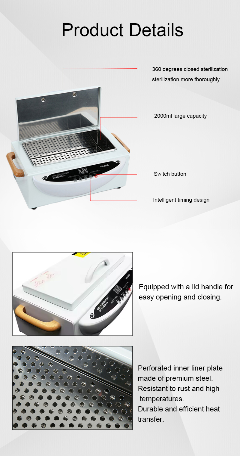 Цей стерилізатор переважно генерує тепло через нагрівальне кільце, використовуючи високі температури для дезінфекції.