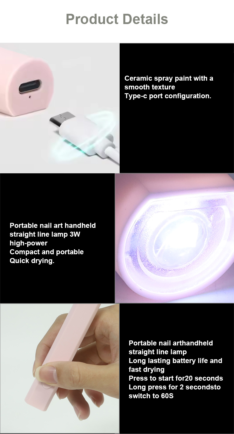 Засіб забезпечує рівномірне висихання клею без усадки. Його подвійні джерела світла забезпечують м’яке нагрівання, щоб запобігти знебарвленню рук і напрузі очей, підходить як для рук, так і для ніг, забезпечуючи неймовірно швидкі результати висихання.