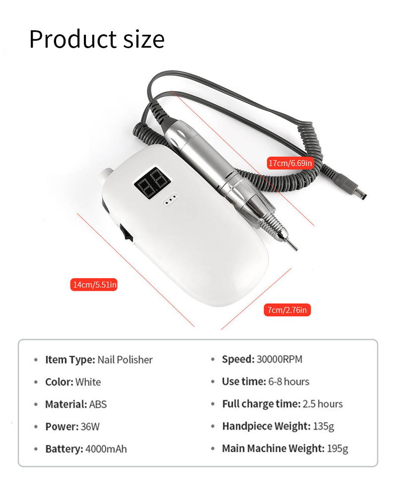 Електричний дриль для нігтів, наконечник, який не так легко пошкодити, 65 Вт, 35000 об/хв