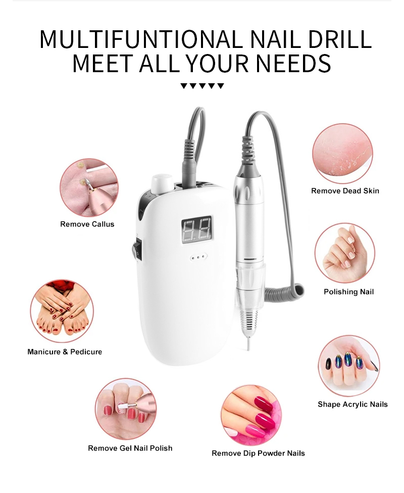 Портативний електричний набір дрилів для нігтів із потужним двигуном 65 Вт 35000 об./хв