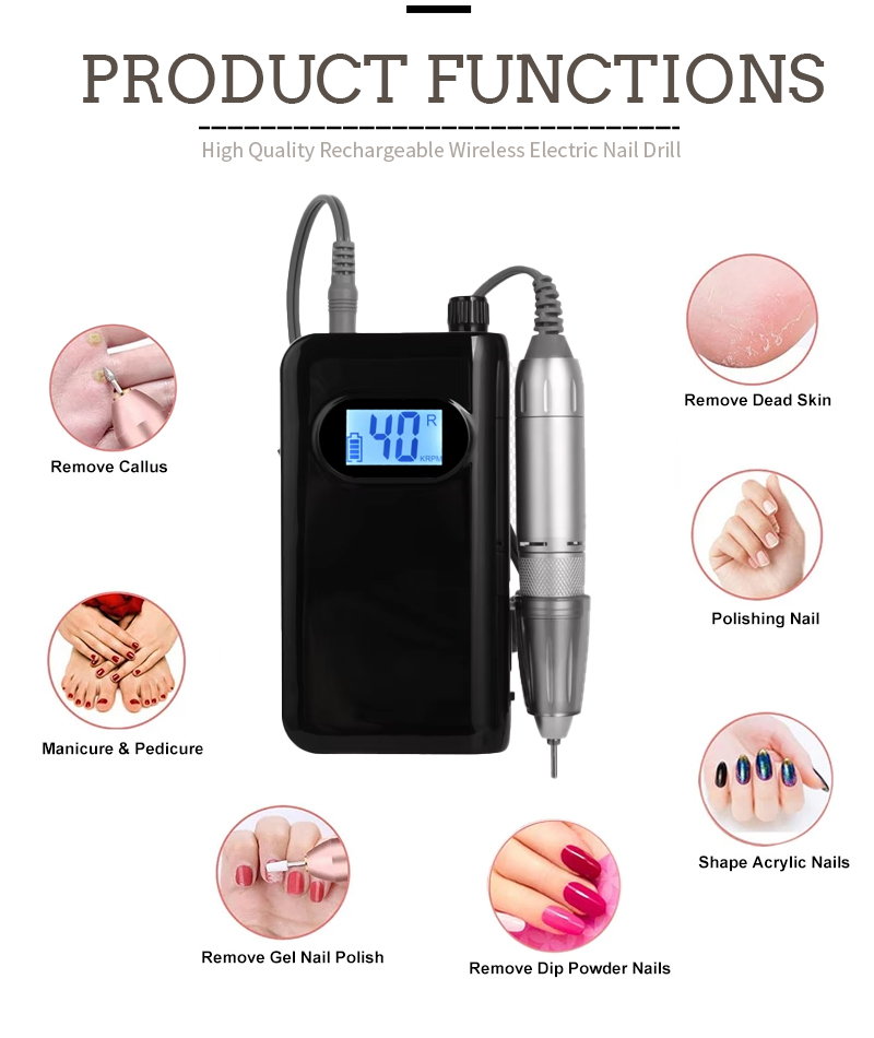 Особливості продукту та застосування високошвидкісного електричного нігтя в 40 000 об / хв для видалення лаку для нігтів