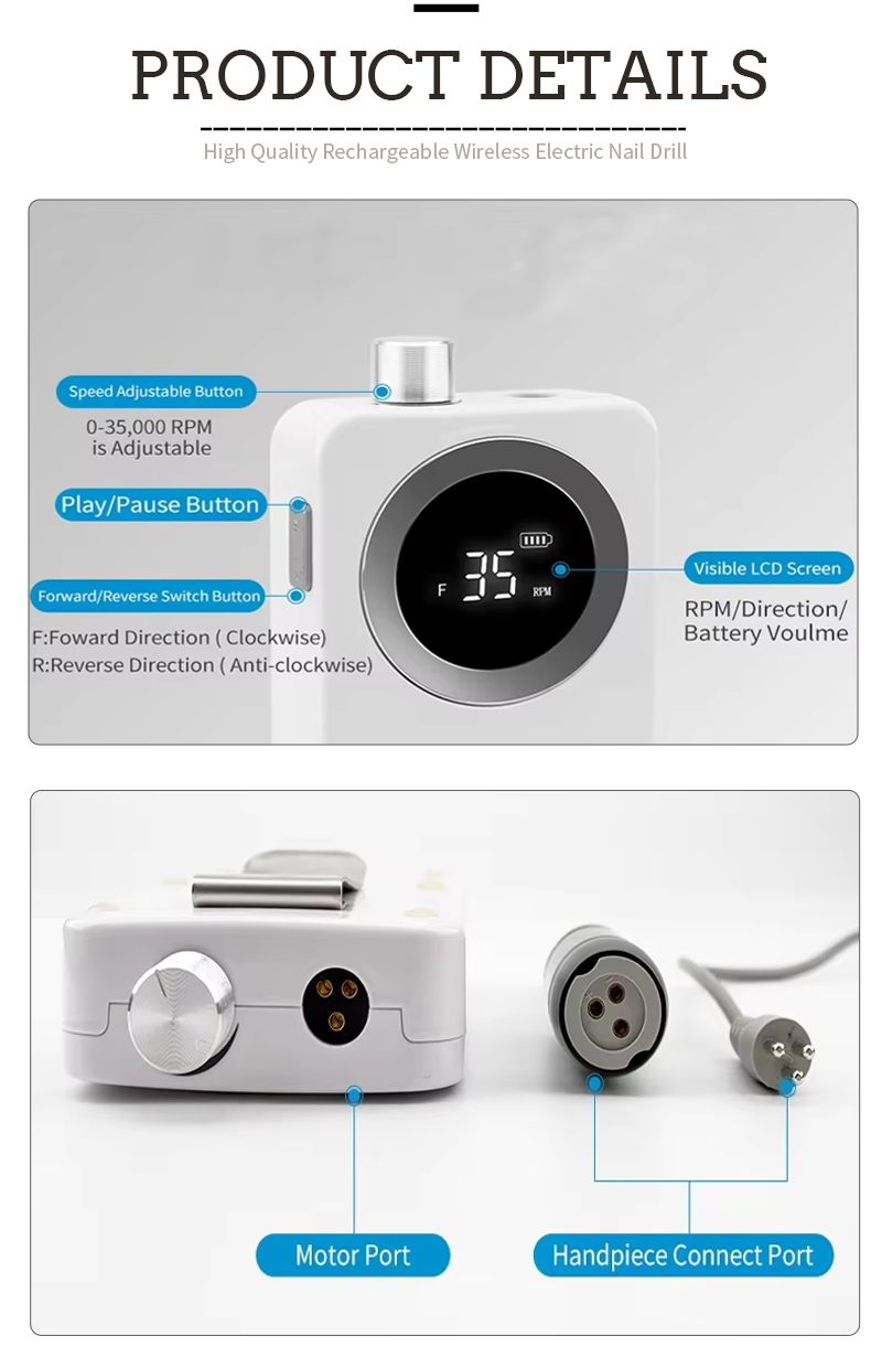 Особливості продукту та застосування професійної електричної пилки для нігтів 35 000 об/хв