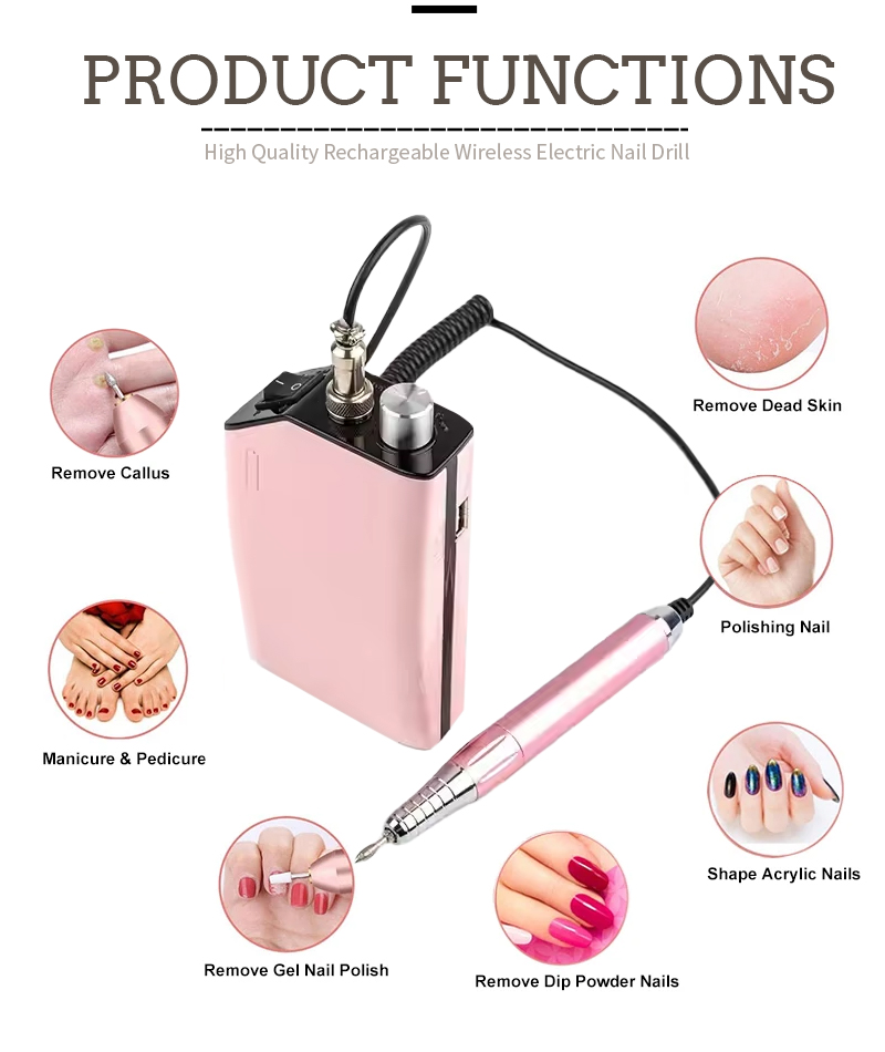 Портативний електричний набір дрилів для нігтів із потужним двигуном 65 Вт 35000 об./хв