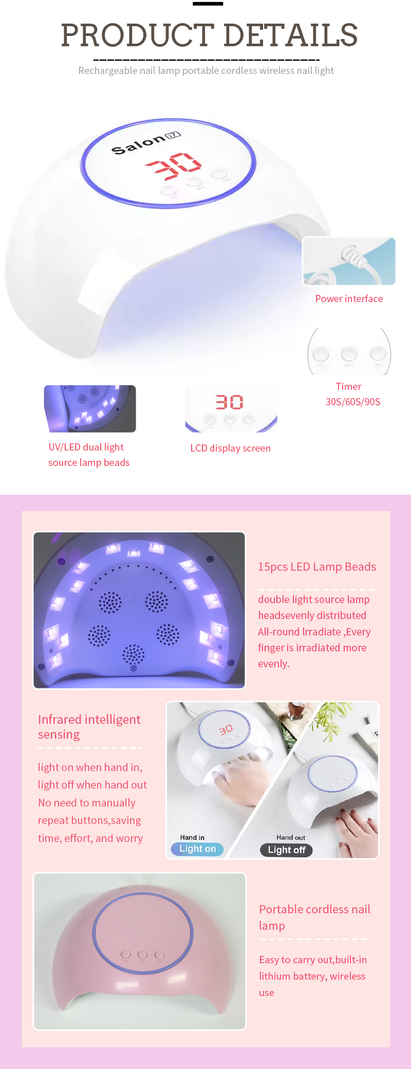 Акумуляторна сушилка для нігтів УФ лампа для нігтів 72 Вт