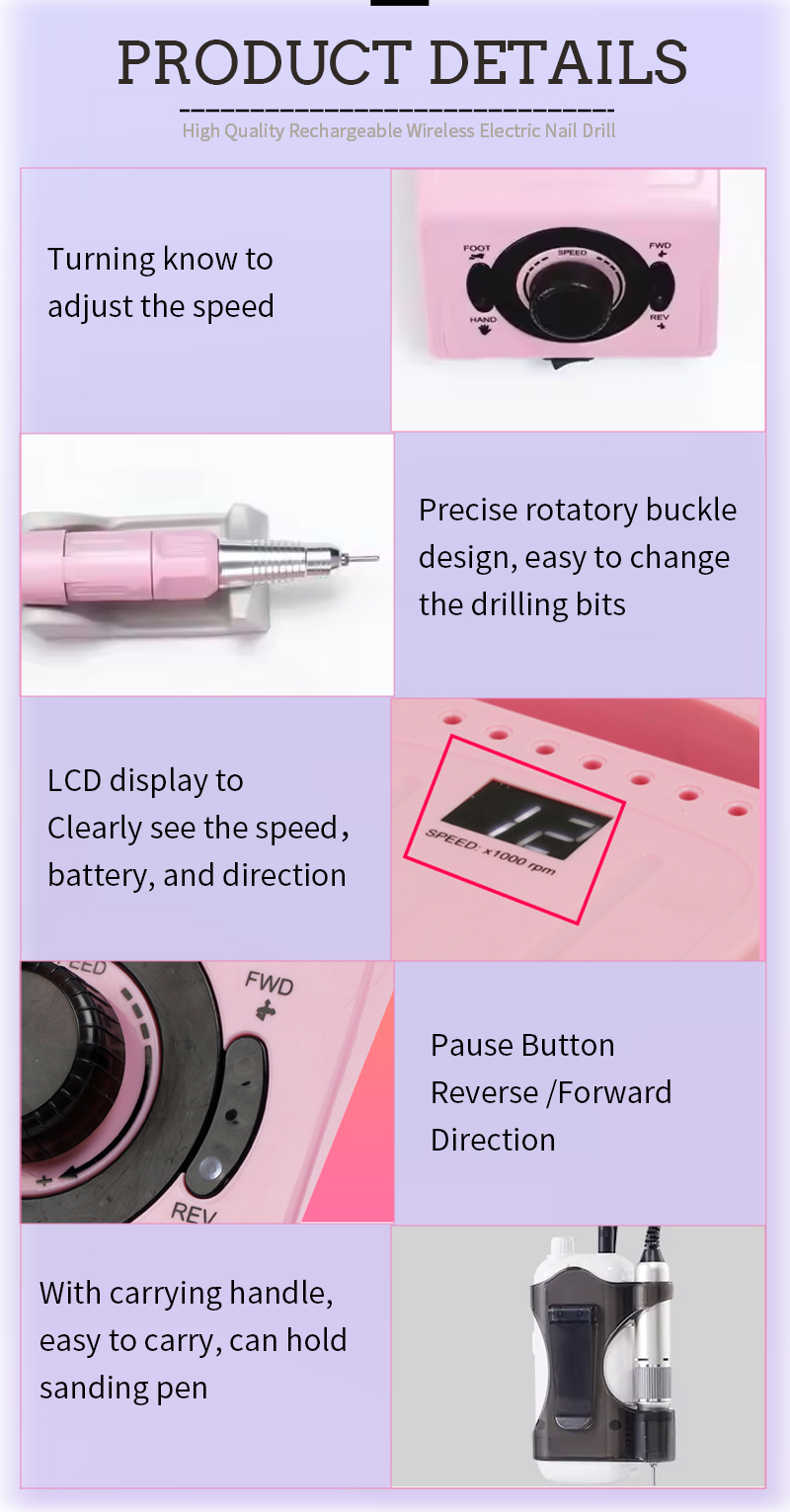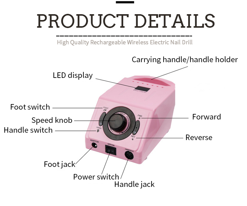 Портативний електричний набір дрилів для нігтів із потужним двигуном 65 Вт 35000 об./хв